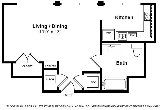 SoHo - Floorplan 1 Apartment Unit: 0917Apartment Model: SoHo$1,520Studio, 1 Bath, 652 sq ftAvailable NowThe Belle Claire