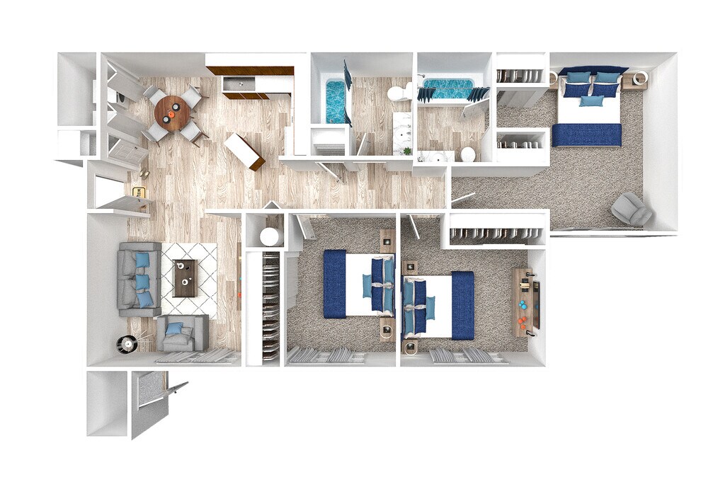 - 3 Bedrooms- 3 Bedroom 2 Bathroom- From $1,3193 Beds, 2 Baths, 1066 sq ftAvailable Now- Model Gallery- Floorplans- Availability Details- Price - Availability Date - Unit - Sq Ft - View Details - $1,319 - Available Now - 2309FV - 1066 - $1,319 - December 19, 2025 - 3215GV - 1066 - Model Amenities and Features- Features- Washer/Dryer