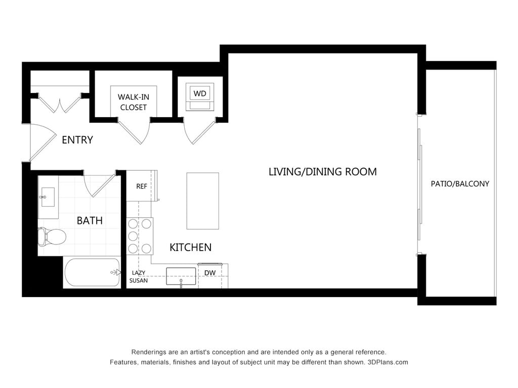 Studio - Floorplan 2 Apartment Unit: 311Apartment Model: Studio$2,199Studio, 1 Bath, 630 sq ftAvailable Now![]()