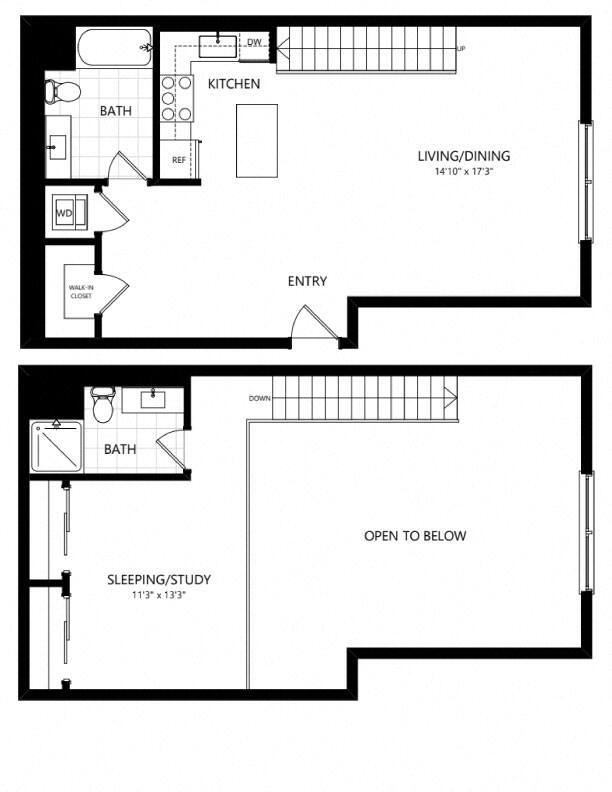 Studio, 1 Bath, 608-885 sq ftAvailable NowModel Gallery