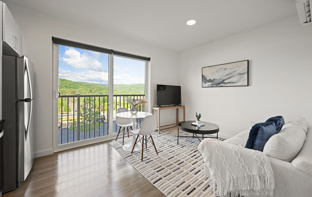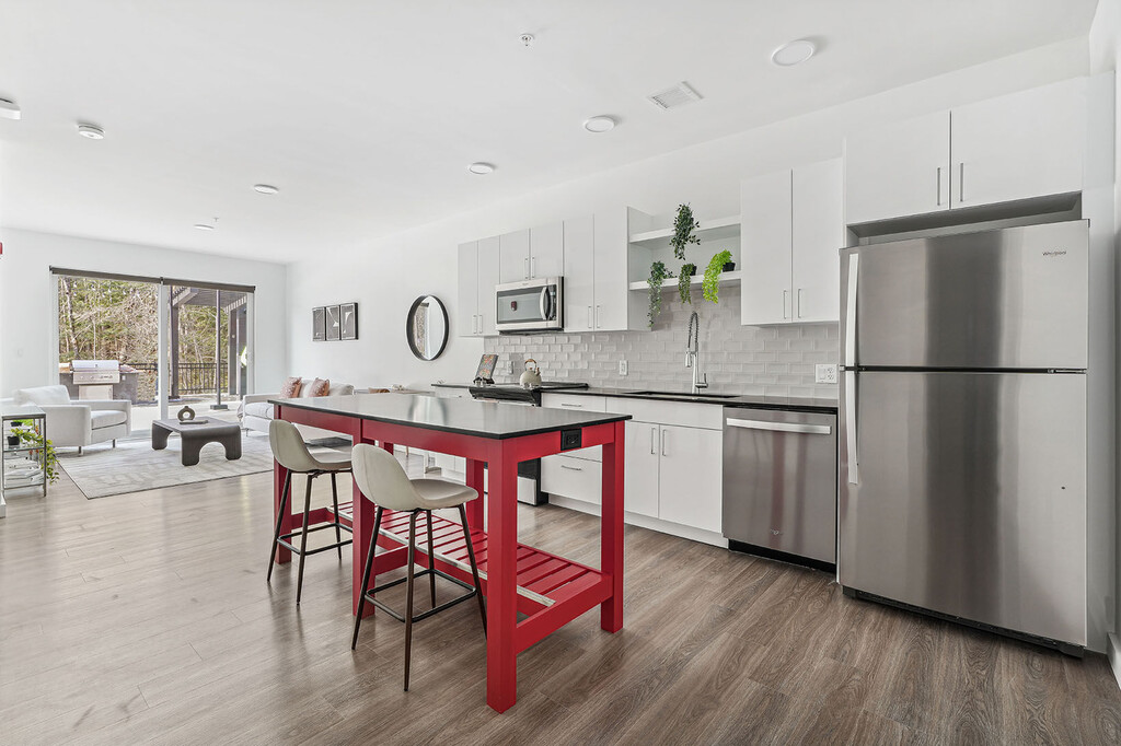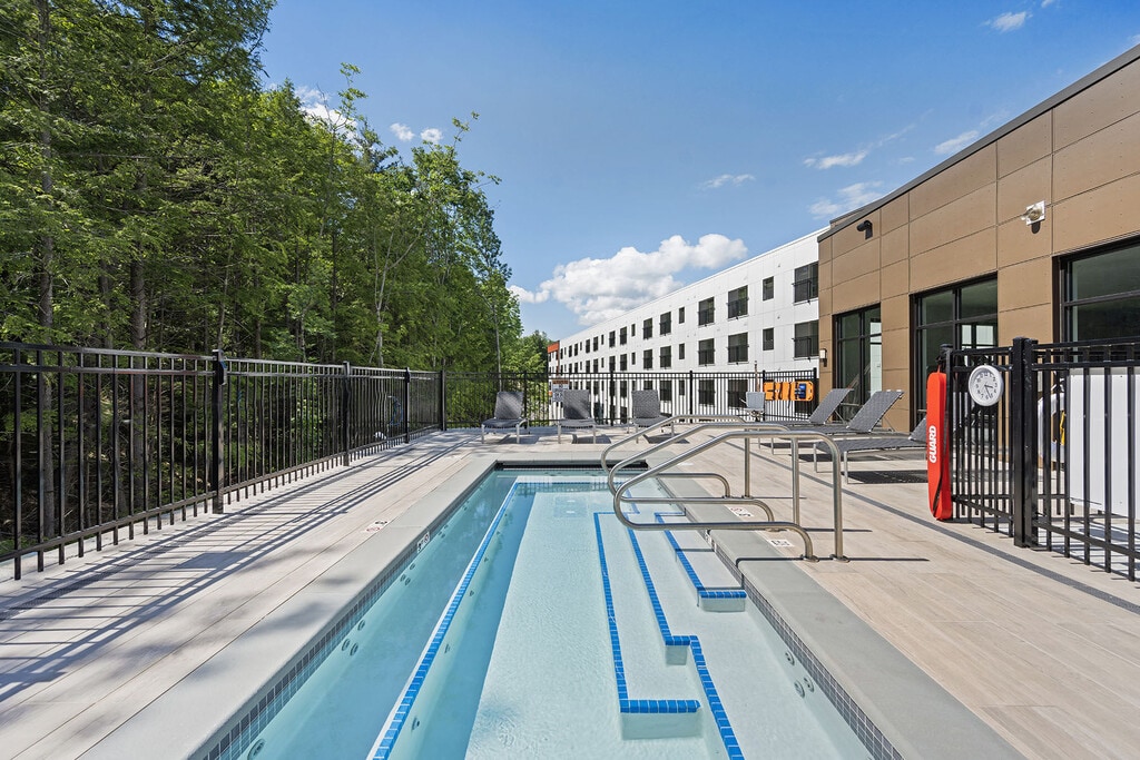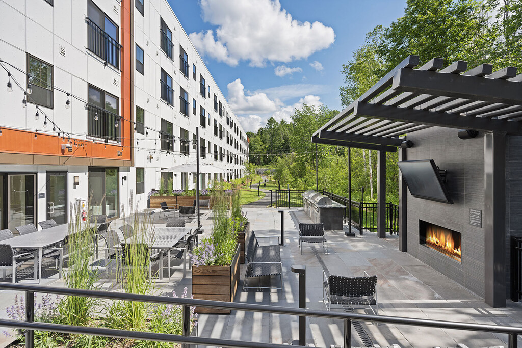 Located minutes from Dartmouth College and Dartmouth Hitchock Hospital, The Marek South consists of two 4-story apartment buildings with a mix of one-bed jr. and one-bed units. Connected by a 2-story dedicated amenities building. The community offers an outdoor terrace with hot tubs, fireplaces, grilling pavilions, a second story Skydeck, fitness center with yoga studio, multi-level resident lounge featuring a bar/kitchen and billiards, coworking spaces, a dog wash, and convenient bike storage.