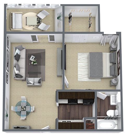 Apartment Model: A1RFrom $7731 Bedroom, 1 Bath, 548 sq ftAvailable Now![]()