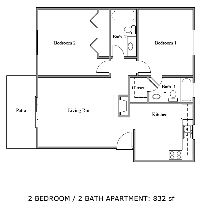 2 Beds, 2 Baths, 832 sq ftAvailable NowModel Gallery
