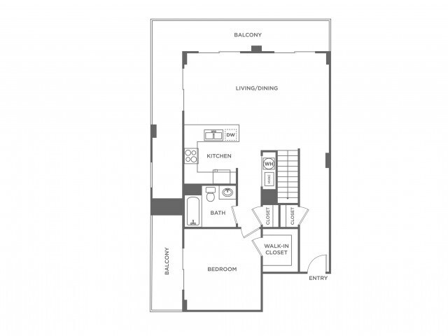 Studio Loft (780 SF) - Floorplan 1 Floor plans are artist's rendering. All dimensions are approximate. Actual product and specifications may vary in dimension or detail. Not all features are available in every rental home. Prices and availability are subject to change. Base rent is based on monthly frequency. Additional fees may apply, such as but not limited to package delivery, trash, water, amenities, etc. Deposits vary. Please see a representative for details.
