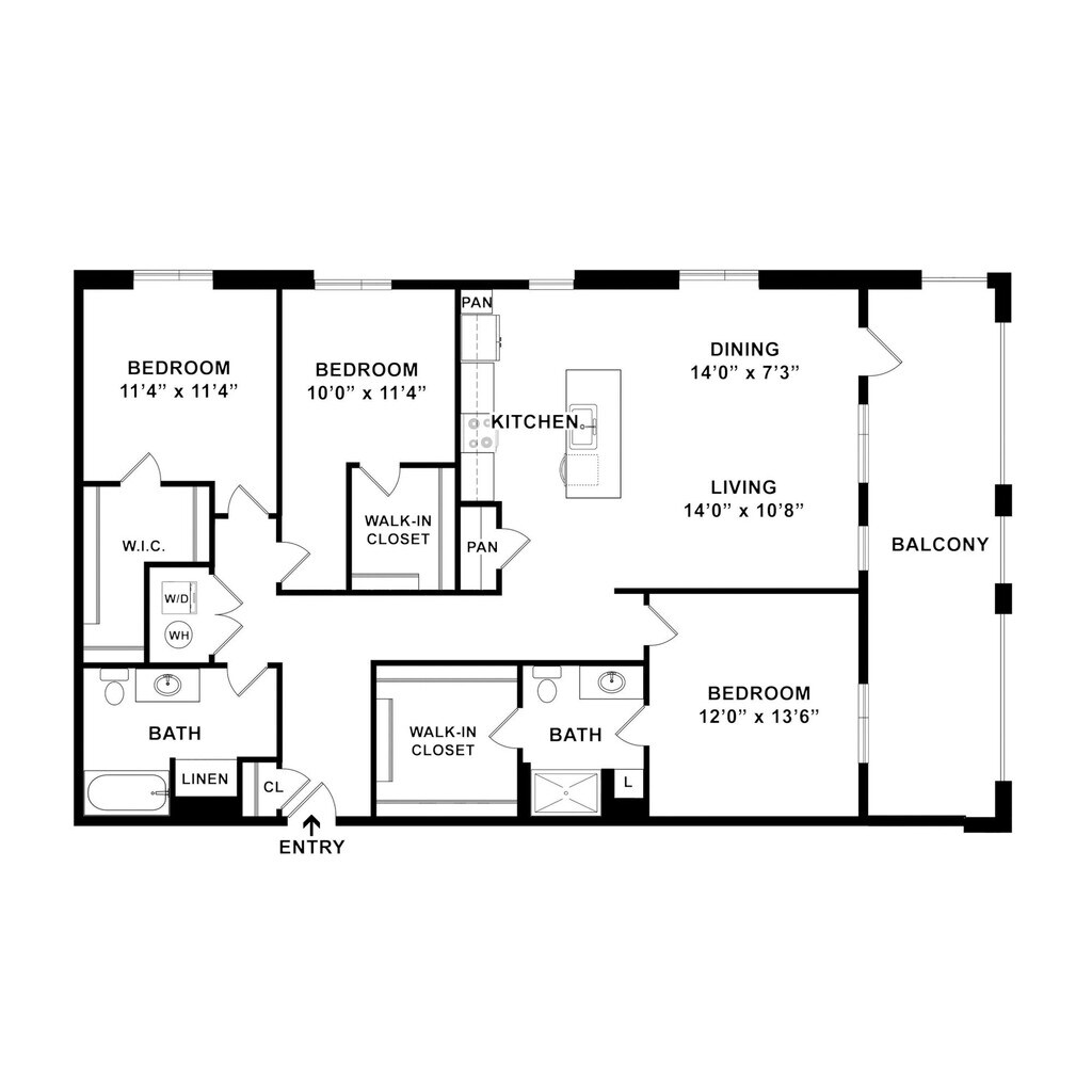 Vonnegut Plus - Floorplan 3 1 Bedroom