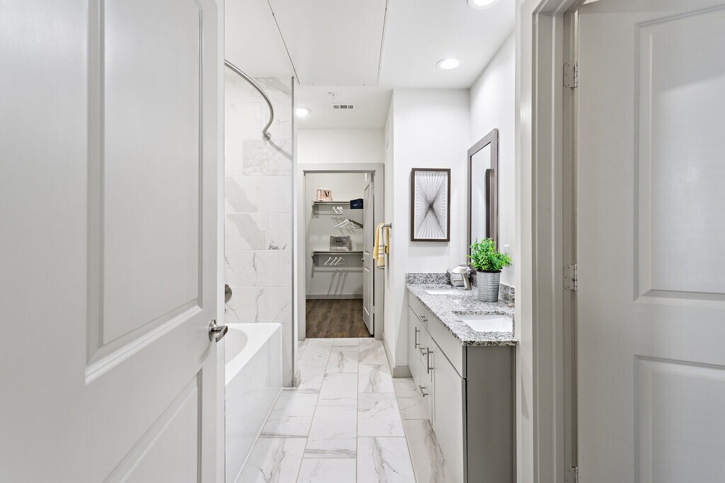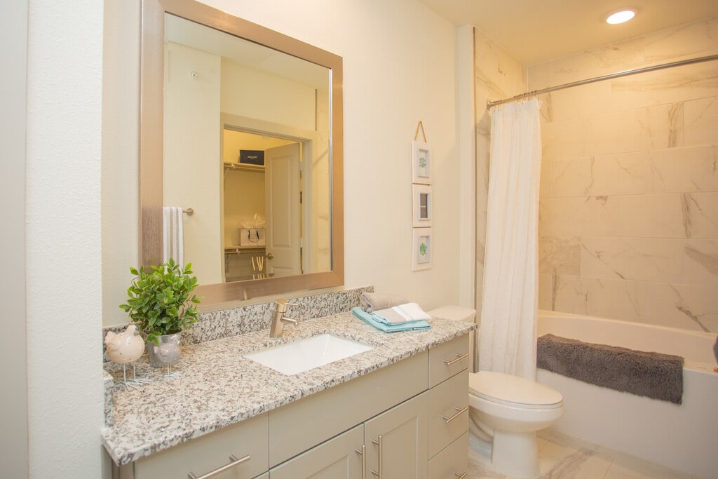March 22, 2020This is the only apartment I've seen that has 10-foot ceilings! Makes a huge difference! Clubhouse and pool area are awesome---like a Vegas style pool with all the lounge areas. Staff is very helpful. Glass showers and no carpet are great, too. Pretty cool to have all these amenities without the hustle and bustle of being in the city.Property Manager Responded