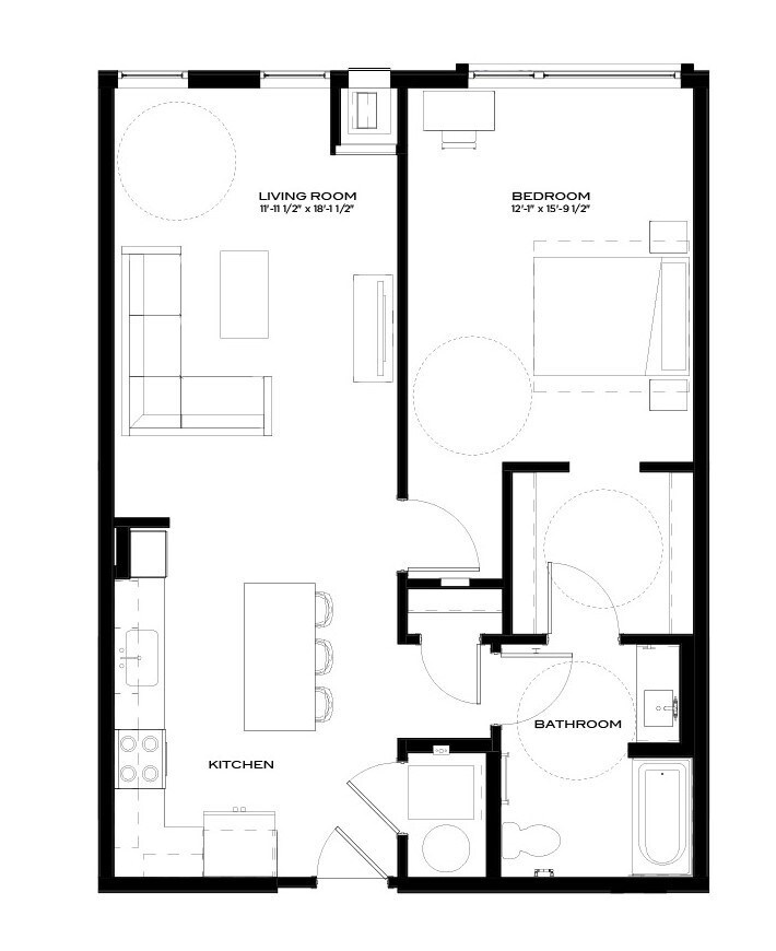 1 Bed, 1 Bath, 703 sq ftModel Gallery