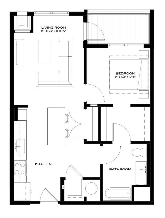 1 Bed, 1 Bath, 714 sq ftModel Gallery