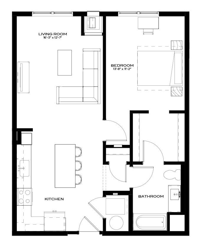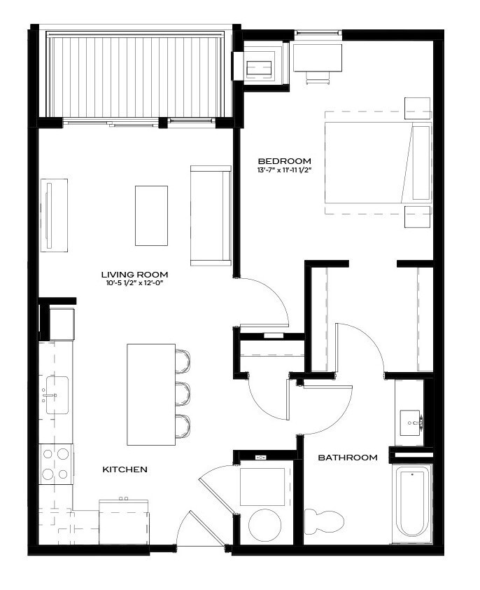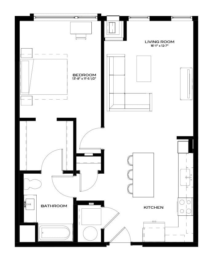 1 Bed, 1 Bath, 673 sq ftModel Gallery