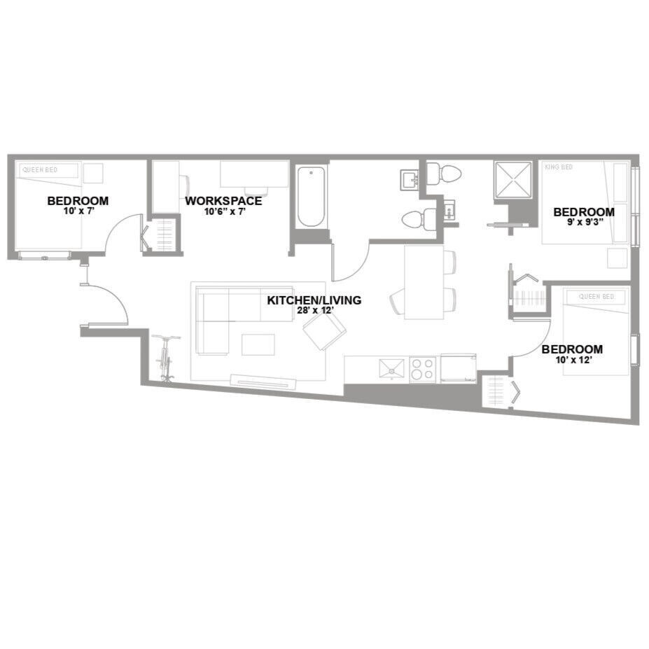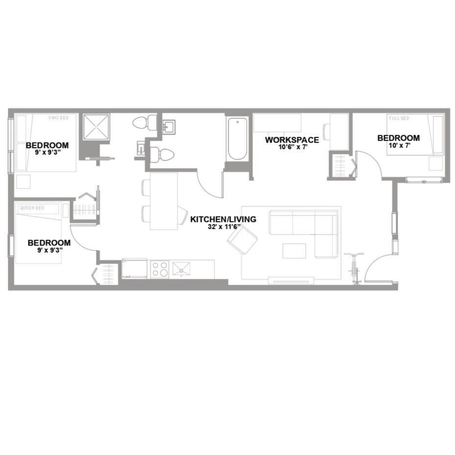 3 Beds, 2 Baths, 625 sq ftModel Gallery