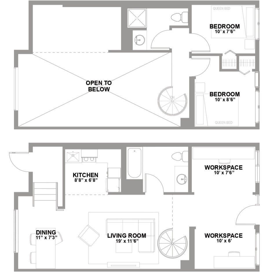 2 Beds, 2 Baths, 955 sq ftModel Gallery