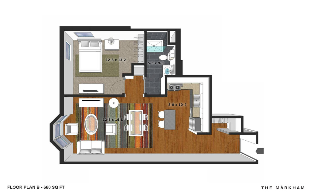 The Markham offers 1 to 2 Bedroom apartments starting from $1,410 and having 660–940 sq ft. Here is the current pricing and availability: