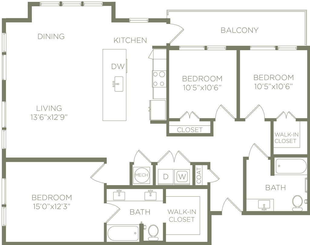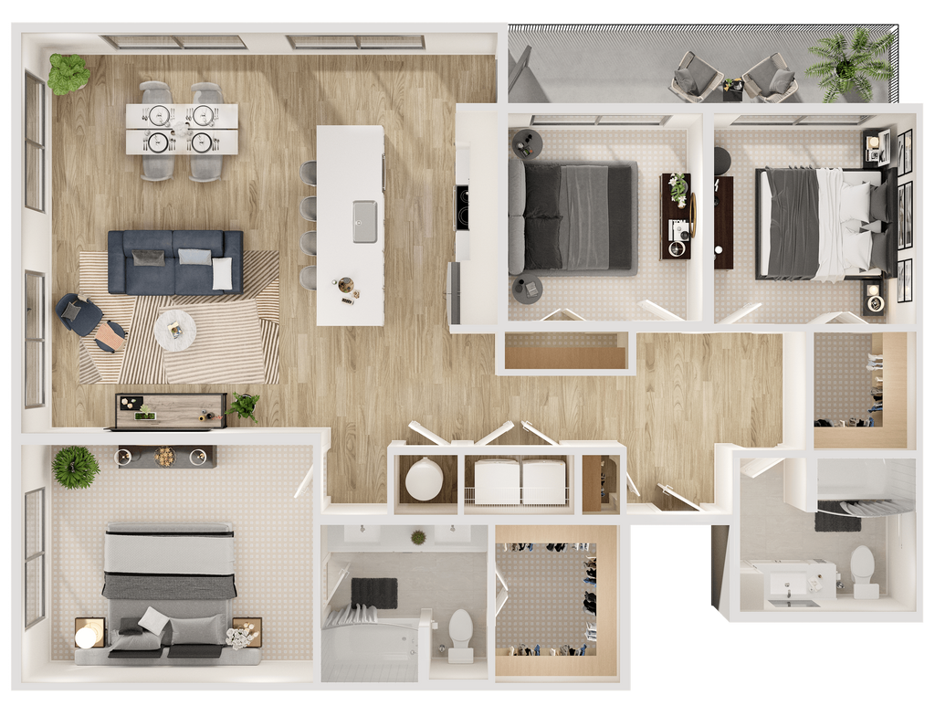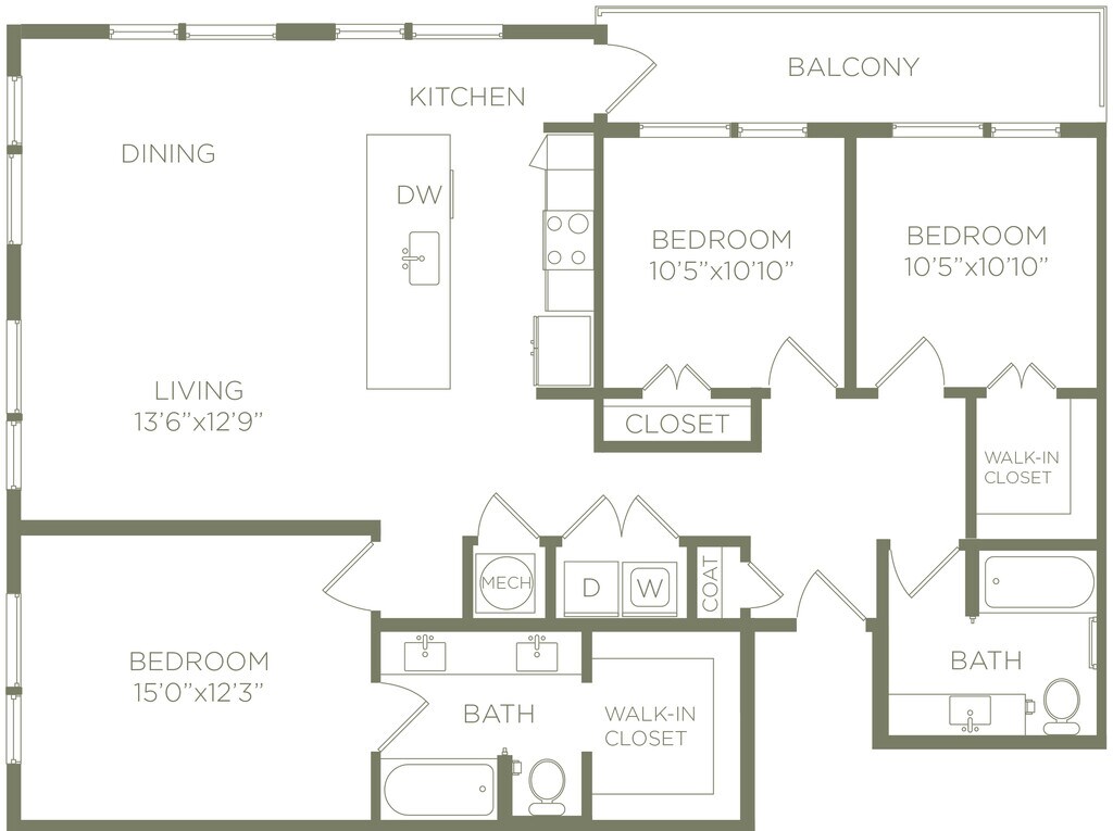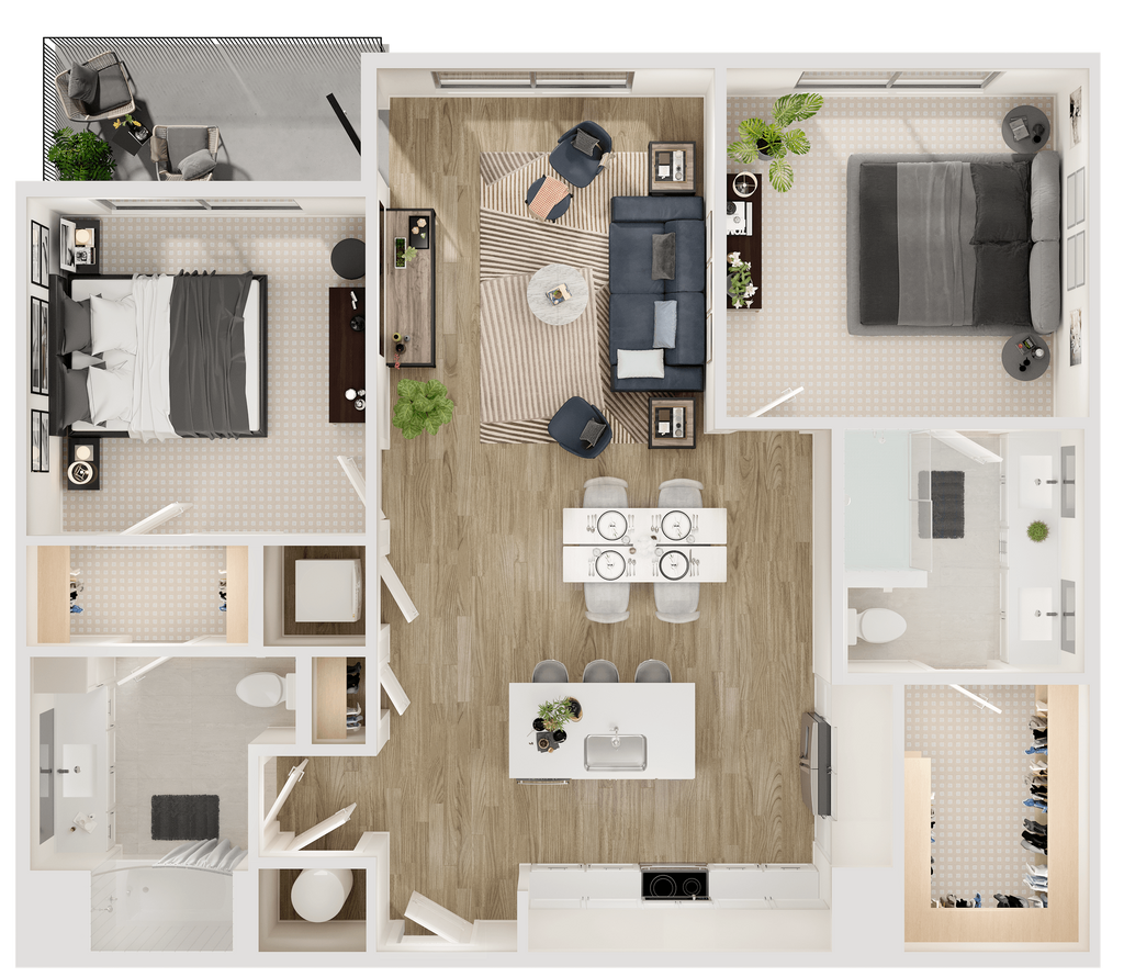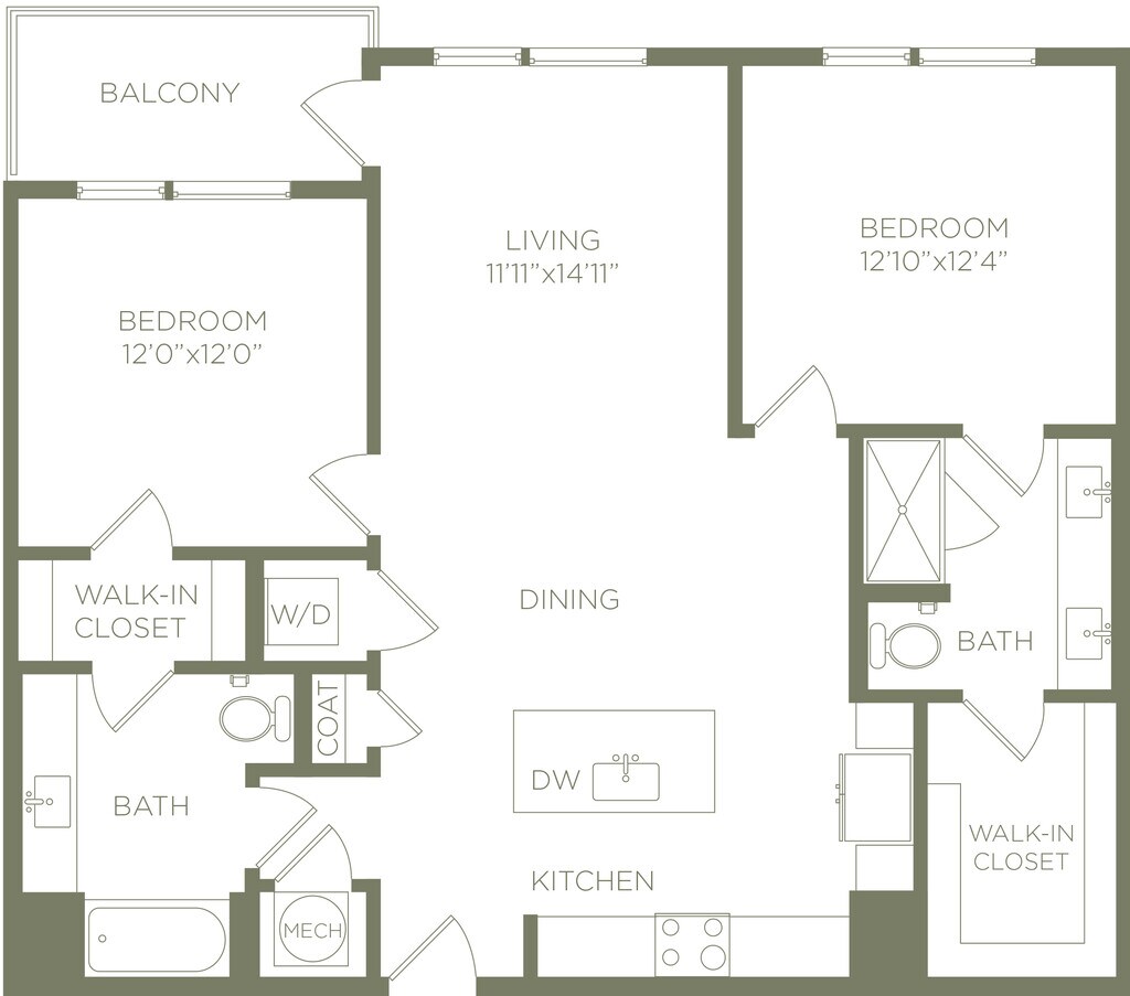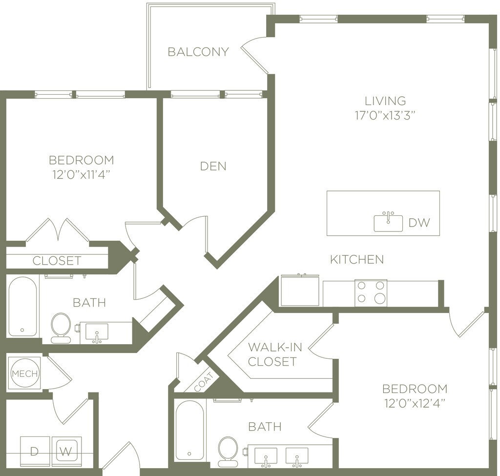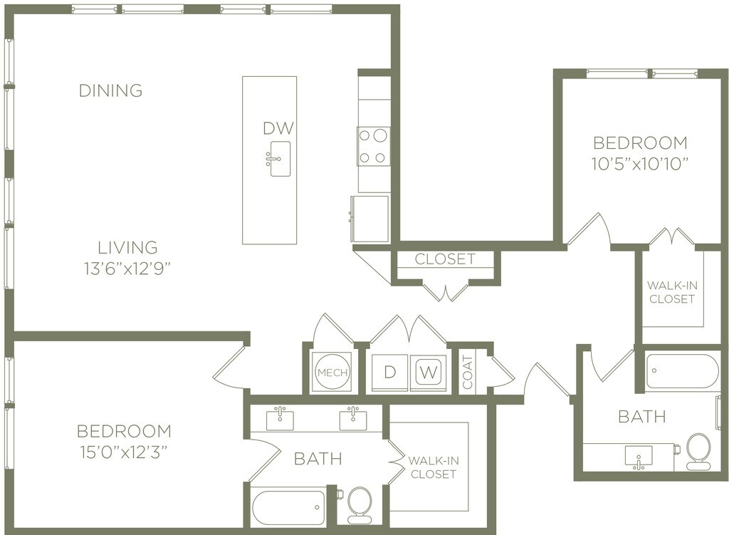 1 Bed, 1 Bath, 917 sq ftAvailable NowLargest 1 BedroomThis is the largest 1 Bedroom at this PropertyModel Gallery