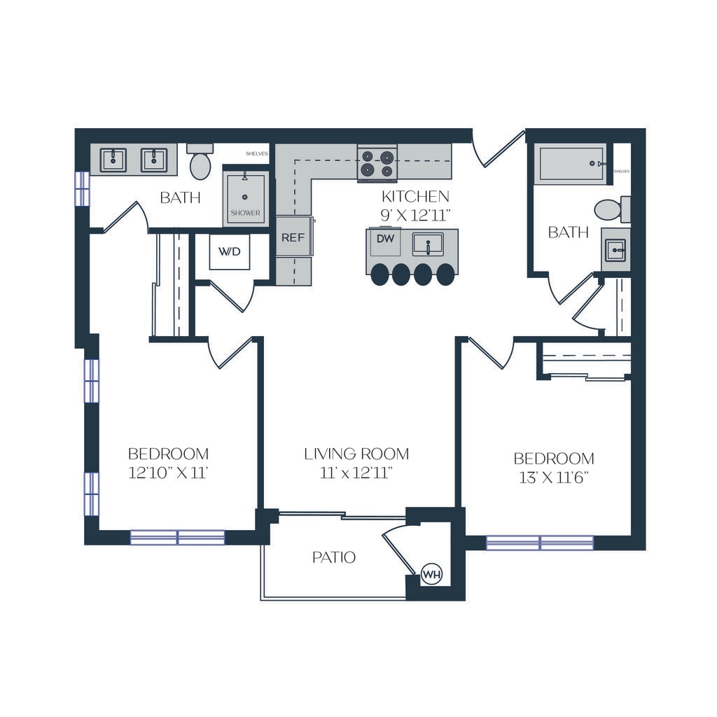 Two Bed Two Bath B - Floorplan 1 ![]()