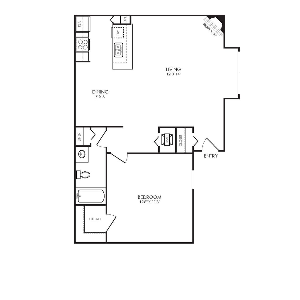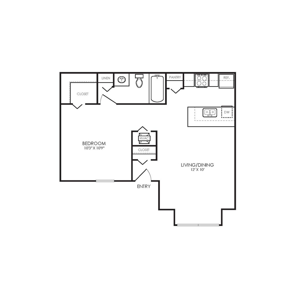 E2 Traditional - Floorplan 1 1 Bedroom