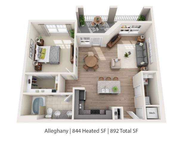 Apartment Model: Alleghany + DenFrom $1,8671 Bedroom, 1 Bath, 1006 sq ftAvailable NowFloor plans are artist's rendering. All dimensions are approximate. Actual product and specifications may vary in dimension or detail. Not all features are available in every rental home. Prices and availability are subject to change. Base rent is based on monthly frequency. Additional fees may apply, such as but not limited to package delivery, trash, water, amenities, etc. Deposits vary. Please see a representative for details.