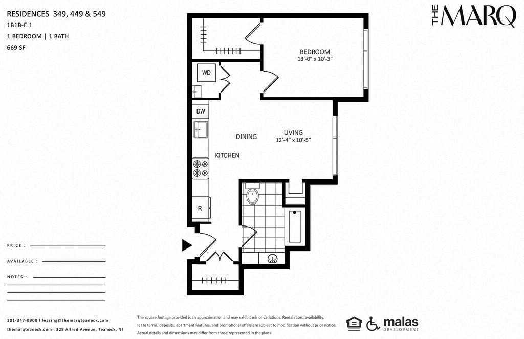 The Marq Teaneck offers 1 Bedroom apartments starting from $2,750 and having 669–785 sq ft. Here is the current pricing and availability: