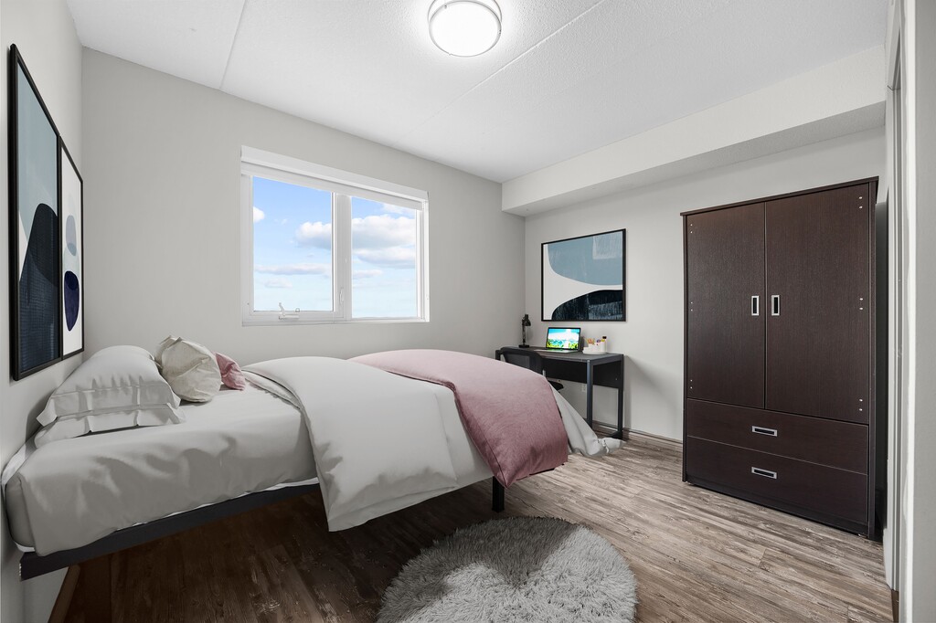 Location: Waterloo, Ontario. The MARQ 1 Columbia St. is in the fantastic location of King Street North and Columbia Street West. This luxury student community includes a spacious kitchen area and living space, ensuite bathrooms and lots of storage space! A mix of laminate and tile flooring finishes complement the stylish kitchen amenities including modern granite countertops & chic fixtures. These fully furnished apartments include 5 bedrooms and individual bathrooms. Known for its sweeping views, floor to ceiling windows and modern paint pallet throughout, the MARQ at 1 Columbia Street is one of the most sought-after places to live in Waterloo! Leasing for 2026 opens soon! Our waitlist is now live — secure your spot today! PROMOTION: Receive 1 month of rent FREE! *Some conditions apply, please inquire for more details.* Limited full group units remaining. Secure your spot today! Please see our current availability below: 1 Room in a 5 Bedroom - Immediate (12 Months): Starting from $999/Month 1 Bedroom (Premium) - Immediate (12 Months): Starting from $1949/Month 1 Room in a 3 Bedroom (Premium) - Immediate (12 Months): Starting from $1399/Month 2026 Waitlist (8 or 12 Months) - JOIN THE WAITLIST! "Tour from the comfort of your own home! Virtual tours offered at every property" *Speak with your leasing specialist about utilities.* TOUR OPTIONS: In-person Virtually (via Facetime or WhatsApp) Top reasons to live at 1 Columbia Street West: Close to University of Waterloo, Laurier & Conestoga College Kitchen with full-size appliances Laminate floors Air conditioning Large living areas Bedroom fully furnished with desk and storage High-Speed WIFI included Personal fob entry to each room and suite Balcony (included in select suites) Onsite laundry facility The MARQ Residence life programs - regular resident events Utilities: Heat and water included Hydro not included ** Ask about details onsite Outdoor Parking - $120/Month , Covered Parking -$135/Month, Garage Parking - $150/Month How to get the process started: Book an in-person tour on your own schedule Meet us at our leasing centre at 345 King Street North OR Online via Facetime or WhatsApp Fill out the forms, and one of our leasing staff will contact you ASAP Suite images shown represent standard unit finishes, which may differ between units. Suite layout varies.