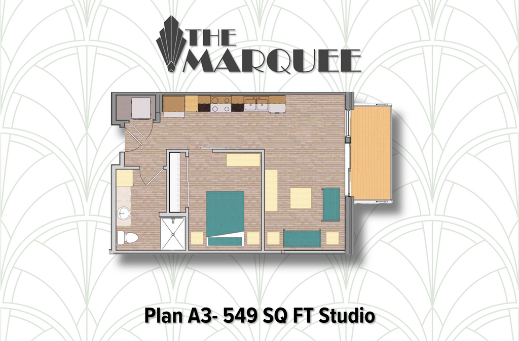 Apartment Model: A3From $1,440Studio, 1 Bath, 549 sq ftAvailable January 1, 2026FloorplansPhotos![]()