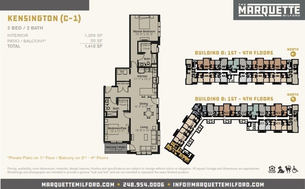 The Marquette offers 1 to 2 Bedroom apartments starting from $1,725 and having 794–1,355 sq ft. Here is the current pricing and availability: