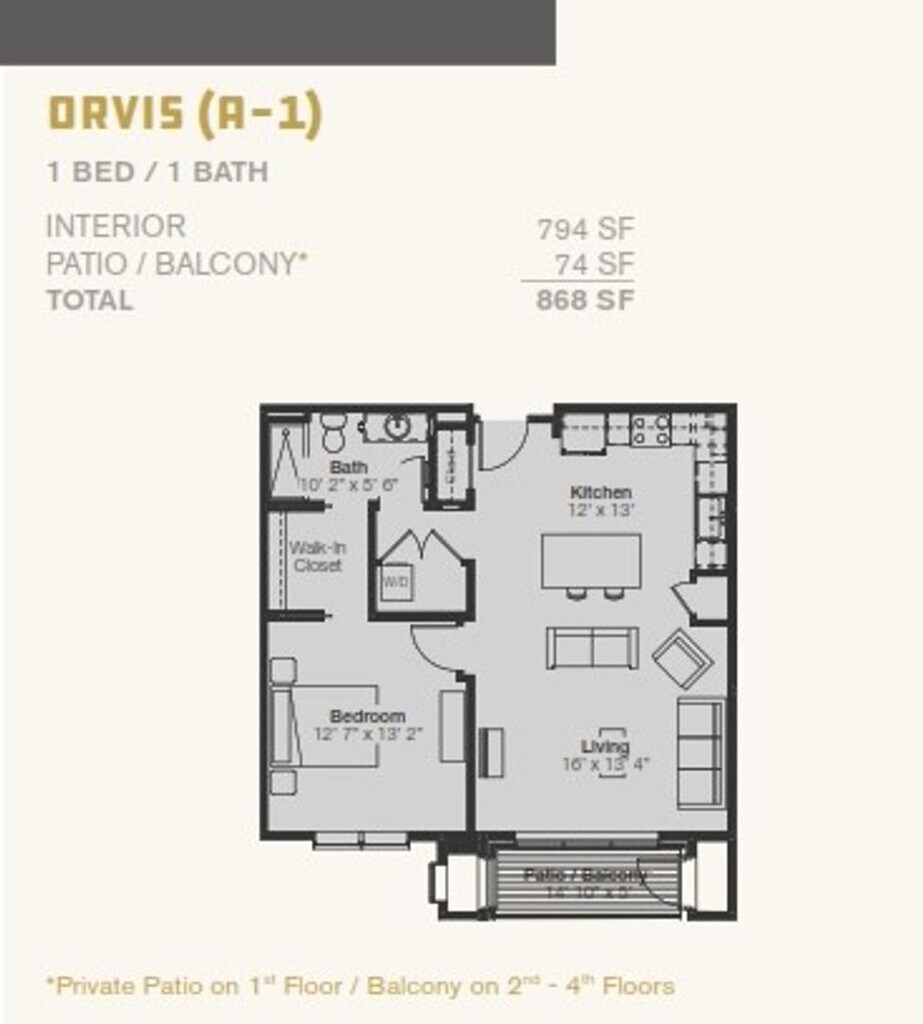 Apartment Model: Orvis (A-1)$1,7751 Bedroom, 1 Bath, 794 sq ftAvailable March 9, 2026FloorplansPhotos![]()