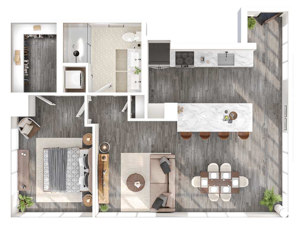 1 Bed, 1 Bath, 911 sq ftModel Gallery