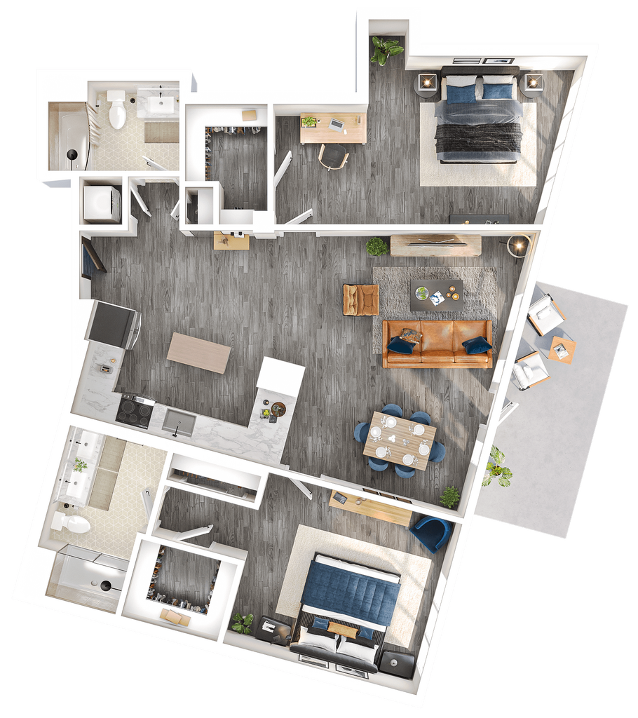 1 Bed, 1 Bath, 711 sq ftModel Gallery