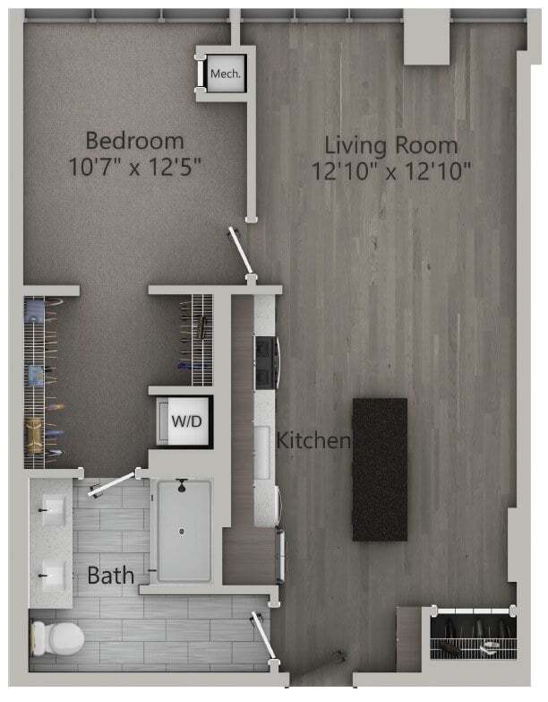 Apartment Model: JR3 | Convertible | 545 SFFrom $2,6251 Bedroom, 1 Bath, 545 sq ftAvailable Now![]()