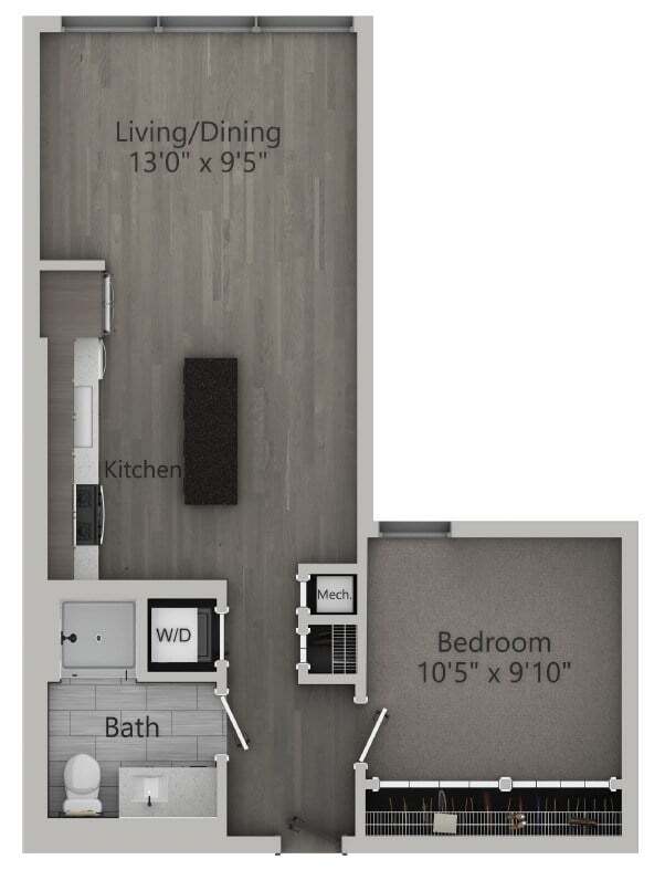 JR3 | Convertible | 545 SF - Floorplan 1 Apartment Unit: 0609Apartment Model: JR3 | Convertible | 545 SF$2,6251 Bedroom, 1 Bath, 545 sq ftAvailable NowA11 | 1 Bedroom | 788 SF