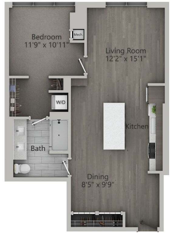 1 Bed, 1 Bath, 545 sq ftAvailable NowModel Gallery