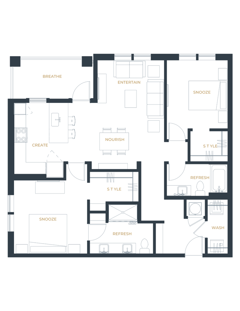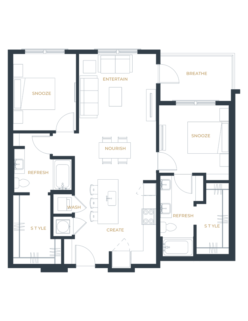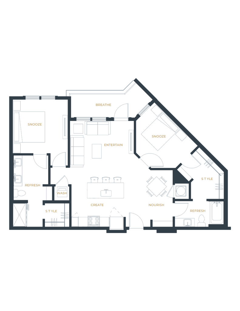 1 Bed, 1 Bath, 670 sq ftAvailable NowModel Gallery
