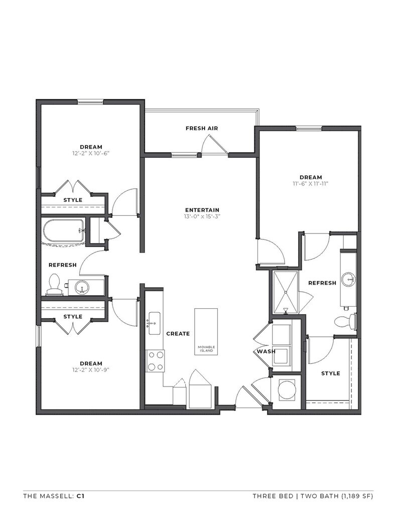 The Massell offers 1 to 3 Bedroom apartments starting from $1,155 and having 771–1,189 sq ft. Here is the current pricing and availability:
