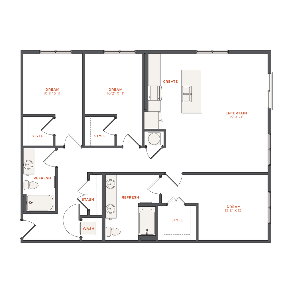 Apartment Model: A1 Alt 2From $1,5001 Bedroom, 1 Bath, 706 sq ftAvailable Now![]()