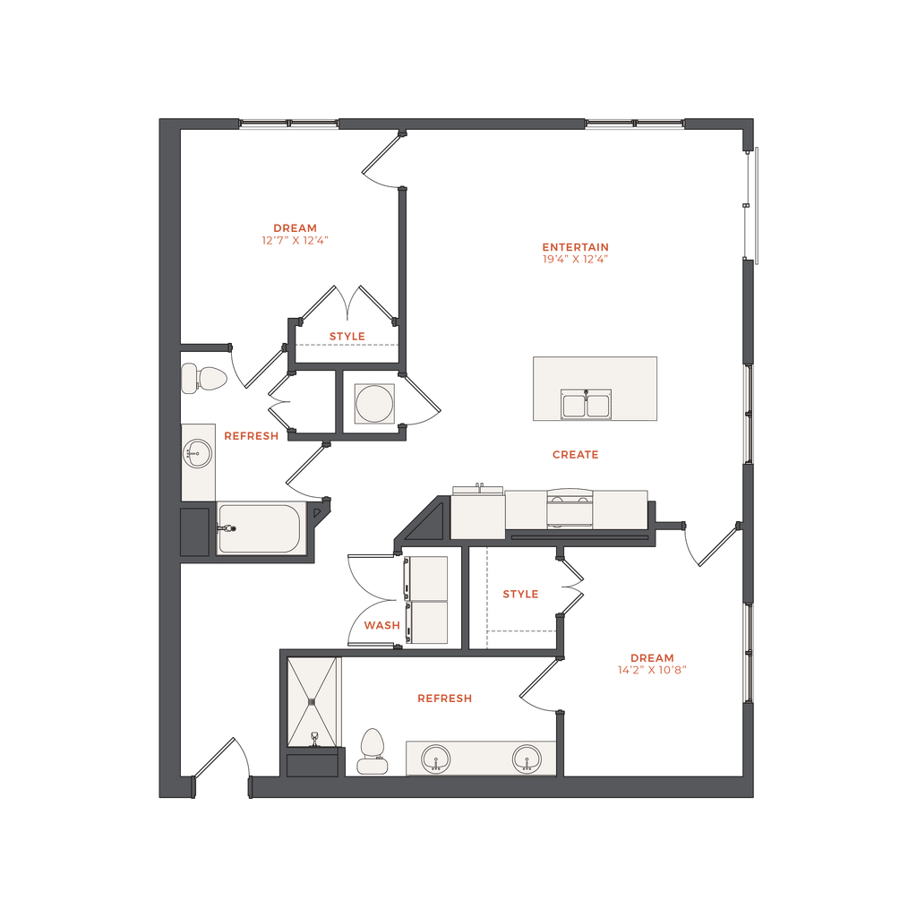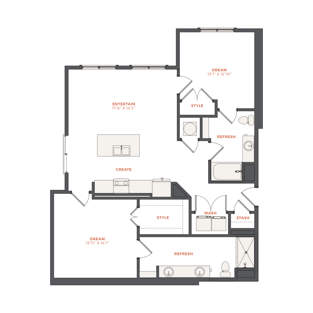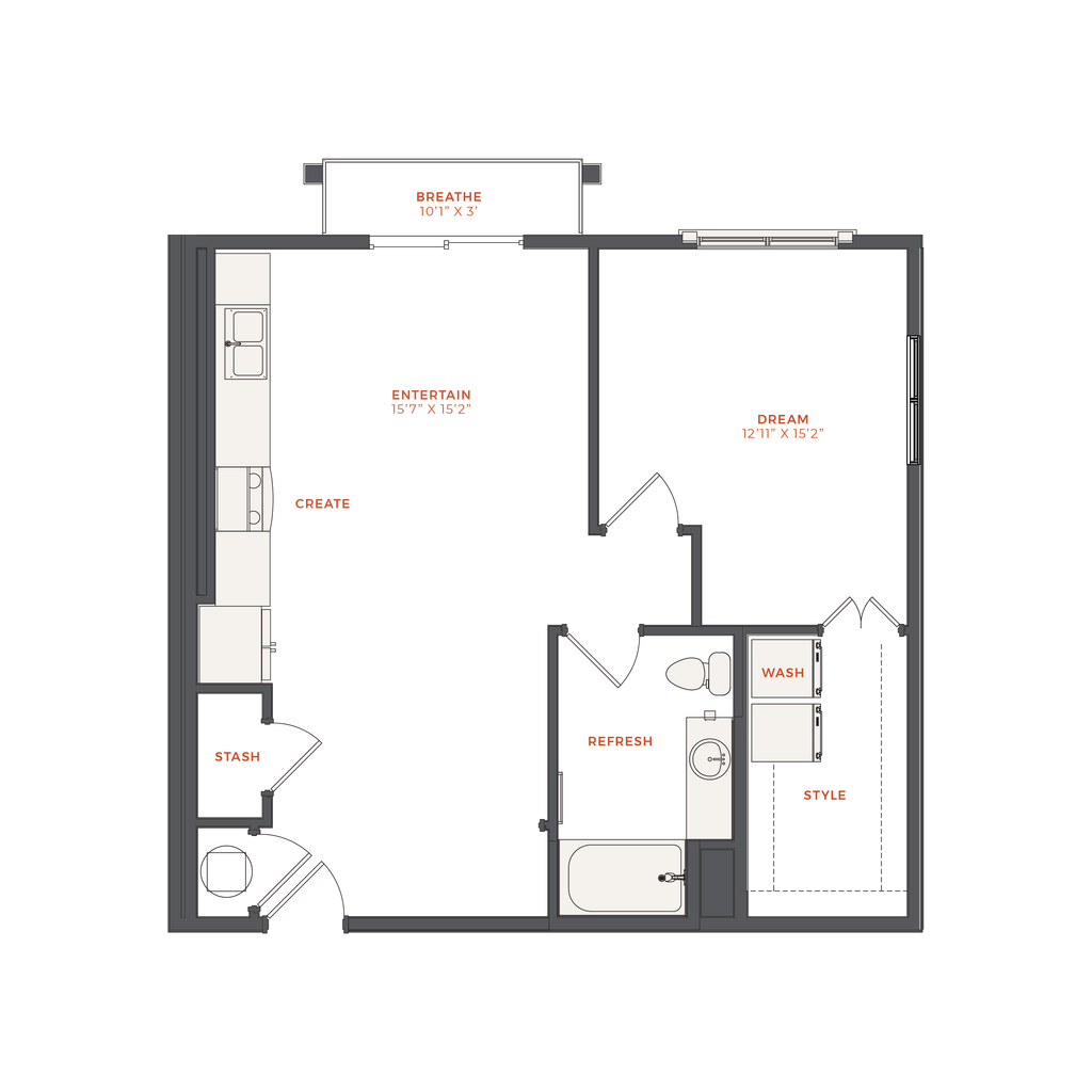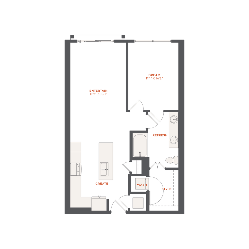 1 Bed, 1 Bath, 706 sq ftAvailable NowModel Gallery