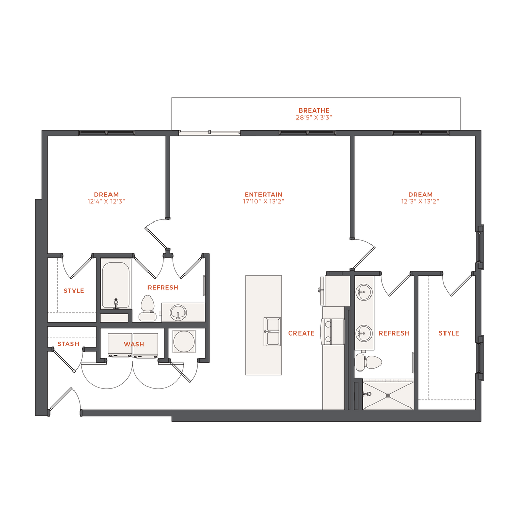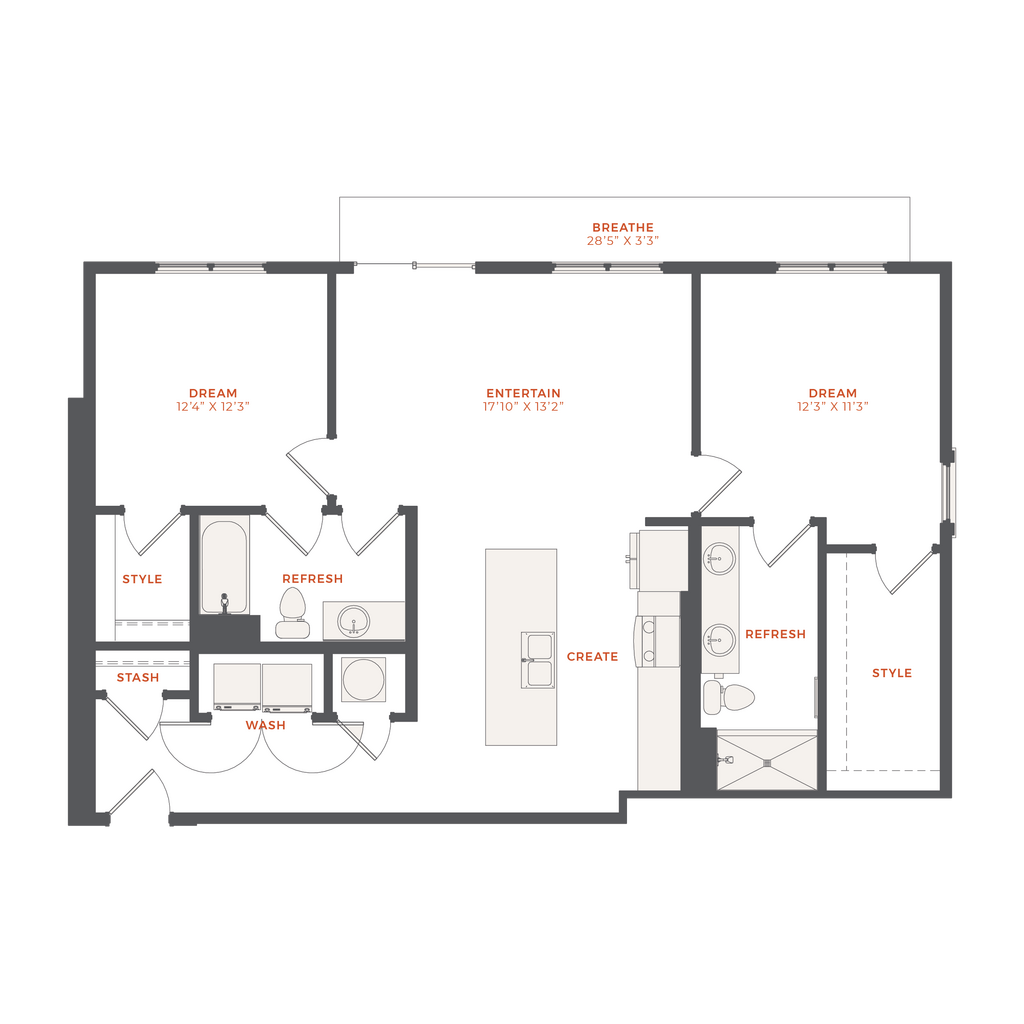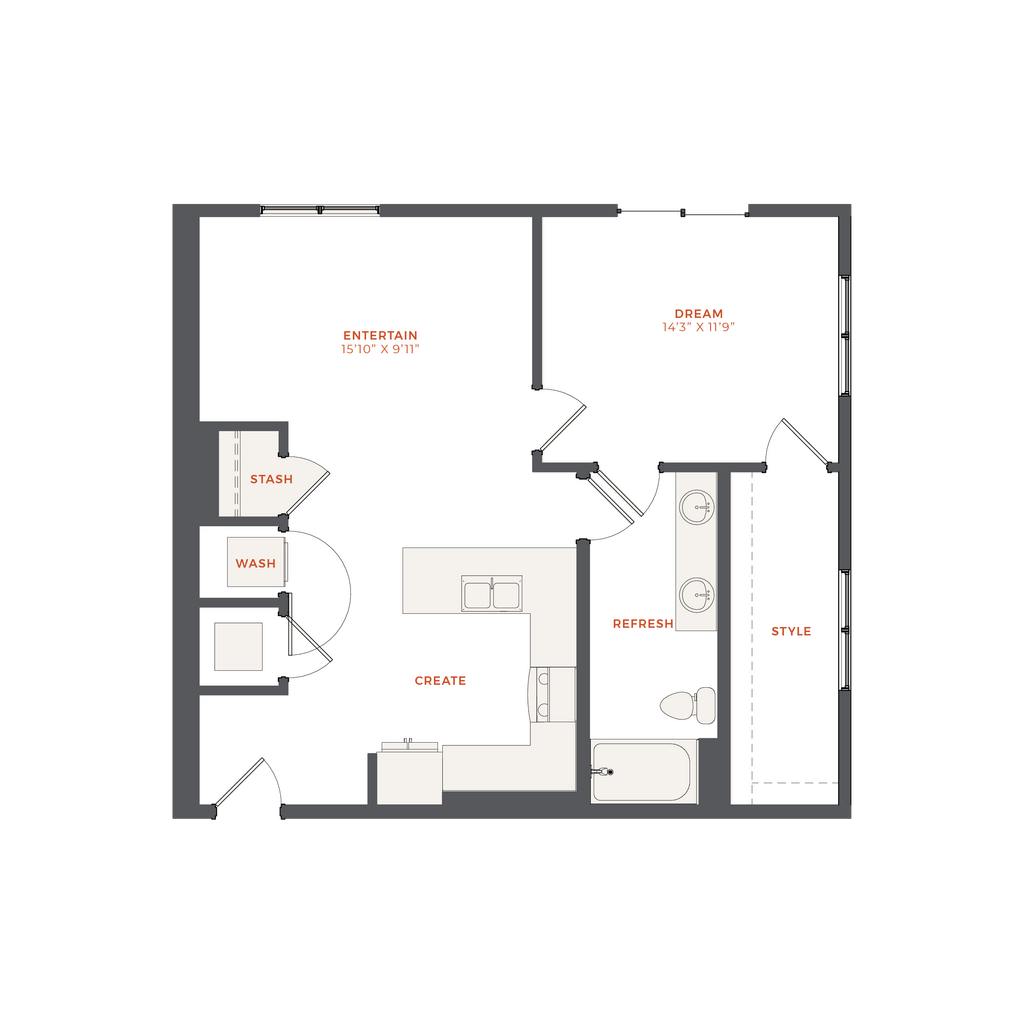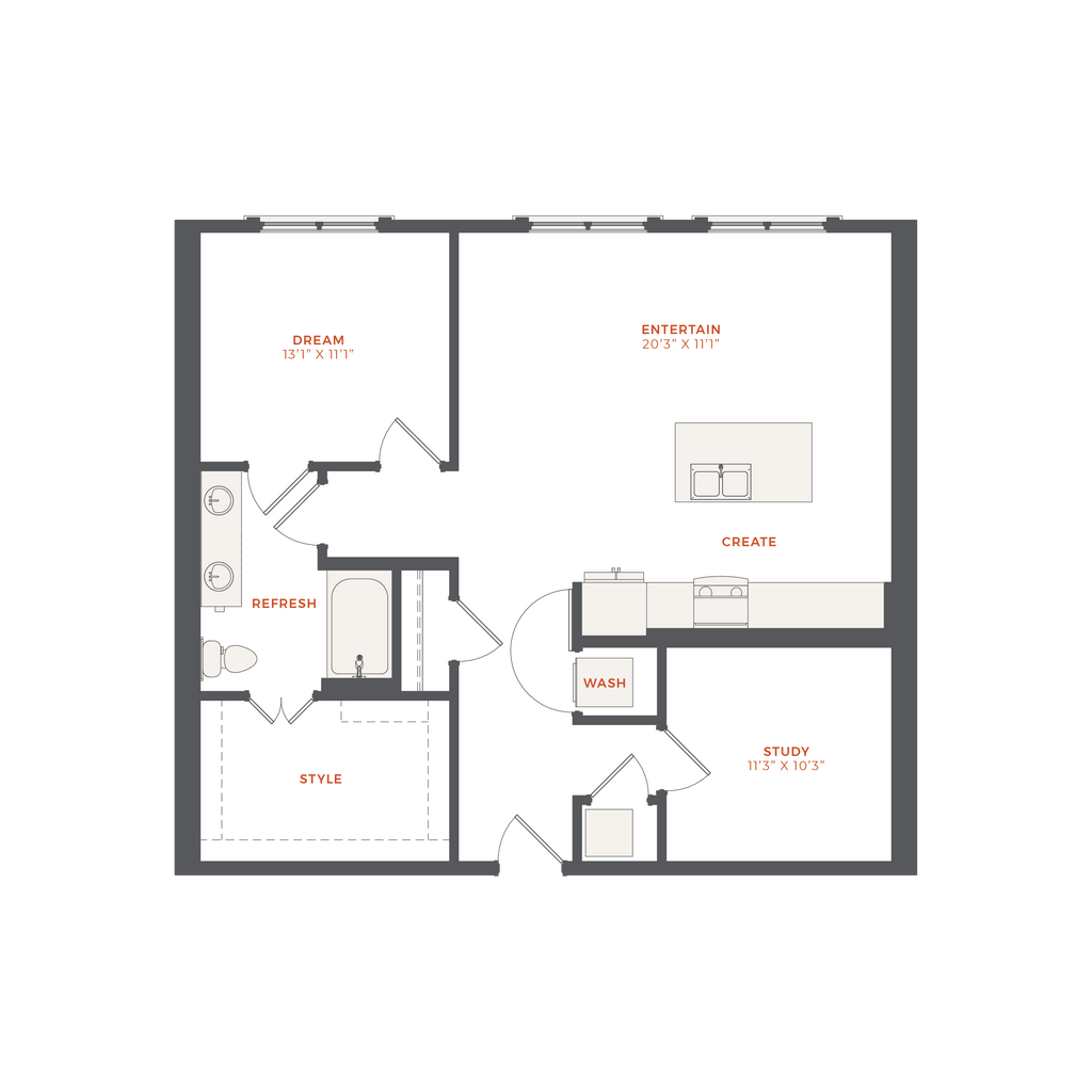 1 Bed, 1 Bath, 706 sq ftAvailable NowModel Gallery