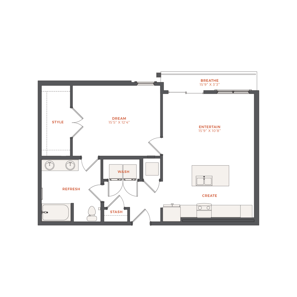 1 Bed, 1 Bath, 693 sq ftModel Gallery
