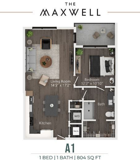 Apartment Model: A1From $1,4291 Bedroom, 1 Bath, 804-818 sq ftAvailable Now![]()