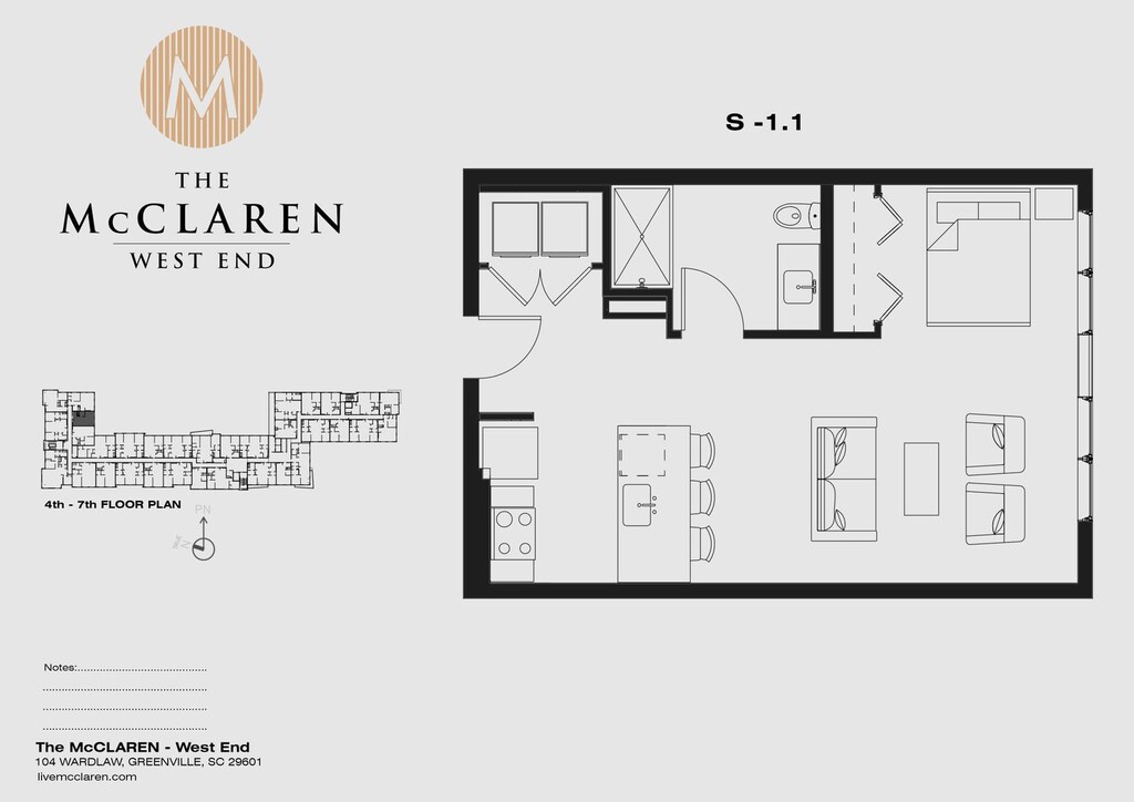 The McClaren is ideally located in Greenville’s Downtown historic West End neighborhood steps from Fluor Field, Falls Park on the Reedy, and the vibrant restaurant row. Our community amenities feature a host of indoor and outdoor amenities including a live lobby coffee bar, saltwater pool with waterfall and fire feature, expansive pool deck with fire pits, biergarten BBQ dining area, co-work from home tech booths, podcast broadcast studio, golf and gaming simulator, full health club including steam and sauna, Tonal personal trainer, reservable event Clubroom space with full glass in lobby, and so much more. Our apartment homes are refined with top-of-the-line condominium level finishes and in-unit full size washers and dryers. We love pets, and do not charge additional pet fees for your furry family members. We can’t wait to meet you! Visit us at today and schedule your tour.