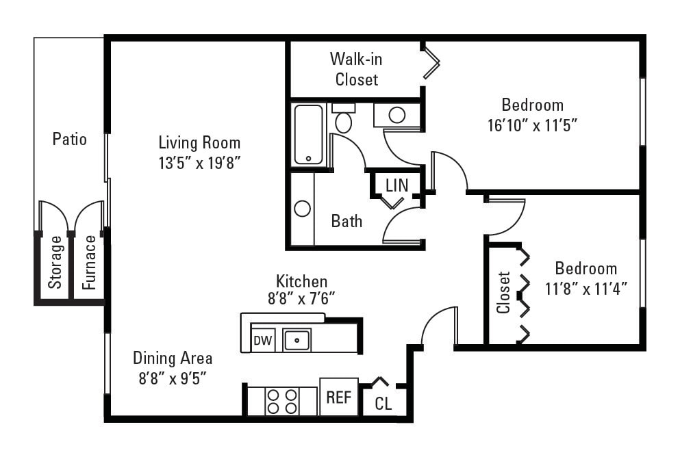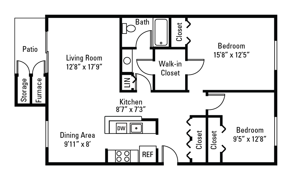 Apartment Model: Two Bedroom-1,053 sqftFrom $1,6202 Bedroom, 1 Bath, 1053 sq ftAvailable Now![]()