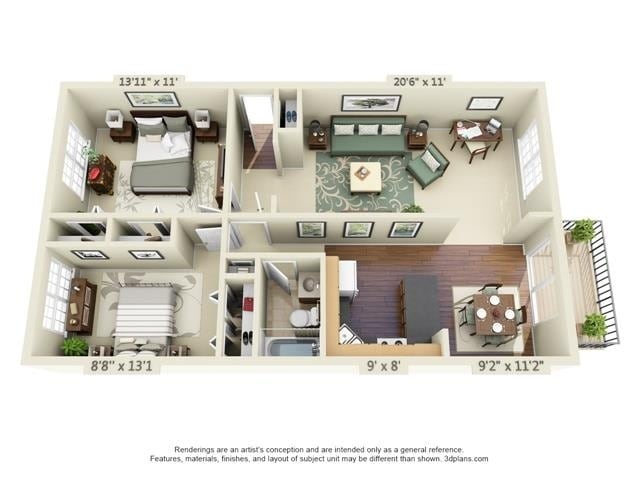 2 Beds, 1 Bath, 890-984 sq ftModel Gallery