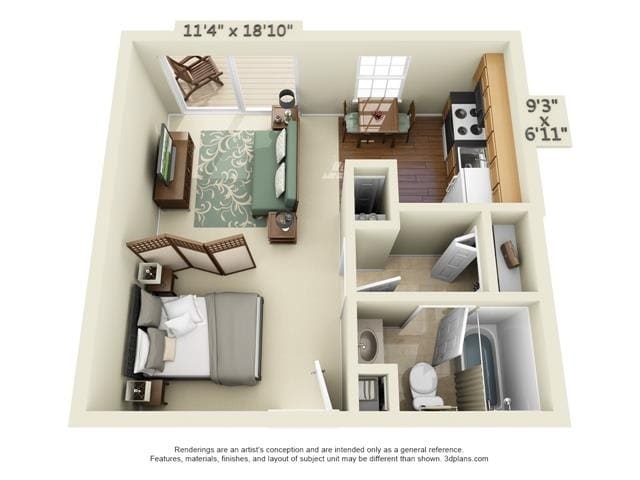 Studio, 1 Bath, 412-758 sq ftModel Gallery