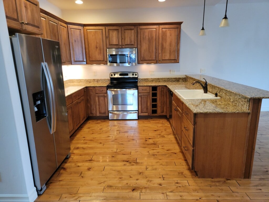This low maintenance, well-appointed two bedroom two bath condominium with mountain views is ready for move in! High end fixtures, gas fireplace, custom cabinetry, and solid granite counters with all appliances included. the bedrooms are large and include custom wood blinds that black out the room. The home has an alcove that can be used as an office, art space, or even a guest bedroom! This two bedroom home is larger than most three bedroom homes! There is a single car garage with driveway. This home has an extra long garage for extra space or to accomodate an oversized vehicle. When you enter the home, you go up a flight of stairs to the main living area. Downstairs just inside from the garage is a mud room with a heater and a large closet and your front door. You will have a large covered deck. This home is located in Meadow Vista community which offers a clubhouse, putting green, large covered patio with BBQ and firepit for entertaining, gym, pool table, full kitchen and livingroom for events. The location is central and is just minutes two minutes to the hospital, Flathead Community College, and the Kidsports Complex. This home is professionally managed by Frontier West Properties. Rental amount is for a one year lease. Other terms may be negotiable. Two small dogs are permitted with a $500 pet deposit (per pet) and $50 pet rent (per pet). Absolutely no smoking anywhere on the property. Give Heather a call or visit our website at to apply. Each person over 18 must apply regardless of contribution to rent.
