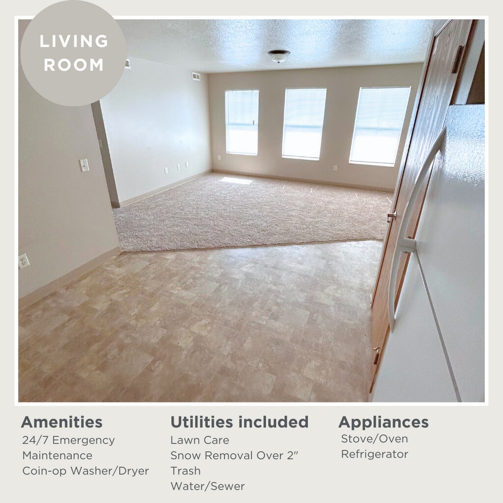 INCOME RESTRICTED Comfortable Living in Our Cozy 2-Bedroom Apartments Welcome to your new home! Our 2-bedroom apartments offer a comfortable and practical living space, perfect for individuals or couples. These apartments are recently remodeled, ensuring a clean and well-maintained environment for all residents. Compact and Efficient: The layout of our apartments is designed for ease of living. The bedrooms are cozy, providing a peaceful space for rest, while the living area is just right for everyday relaxation and dining. Modern Touches: Each apartment comes with essential modern amenities. The kitchen is equipped with up-to-date appliances, making meal preparation simple and enjoyable. The living spaces are uncluttered, offering a neat and tidy atmosphere. Clean and Well-Kept: We prioritize cleanliness and upkeep. You'll find the apartment in immaculate condition upon moving in, and our maintenance team is always on hand to ensure everything stays in top shape. These 2-bedroom apartments are ideal for those seeking a blend of comfort, convenience, and simplicity. *Rent rates and availability are subject to change. Images, 3D tours, and renderings of units may be similar to available units and do not necessarily represent the specific units available. Please contact the property for current rates and unit availability. Rental Terms Rent: $850 Security Deposit: $850 Pet Policy Cats allowed Small Dogs allowed Amenities 24/7 Emergency Maintenance Coin op Washer/Dryer Utilities included: Water/Sewer Trash Lawn Care Snow Removal Over 2" Appliances Stove/Oven Refrigerator