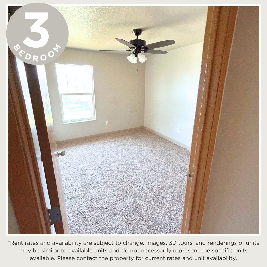 3 Bedroom - Floorplan 12 Apartment Unit: 103Apartment Model: 3 Bedroom3 Bedroom, 2 Bath, 1045 sq ftAvailable NowApartment Unit: 506Apartment Model: 3 Bedroom3 Bedroom, 2 Bath, 1045 sq ftAvailable NowApartment Unit: 106Apartment Model: 3 Bedroom3 Bedroom, 2 Bath, 1045 sq ftAvailable January 14, 20263 Bedroom - TH
