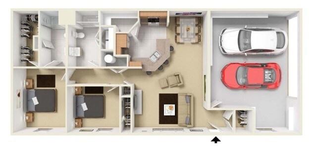 2 Beds, 2 Baths, 960 sq ftModel Gallery