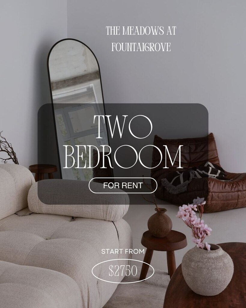 The Meadows at Fountaingrove offers 1 to 2 Bedroom apartments starting from $2,400 and having 750–1,426 sq ft. Here is the current pricing and availability: