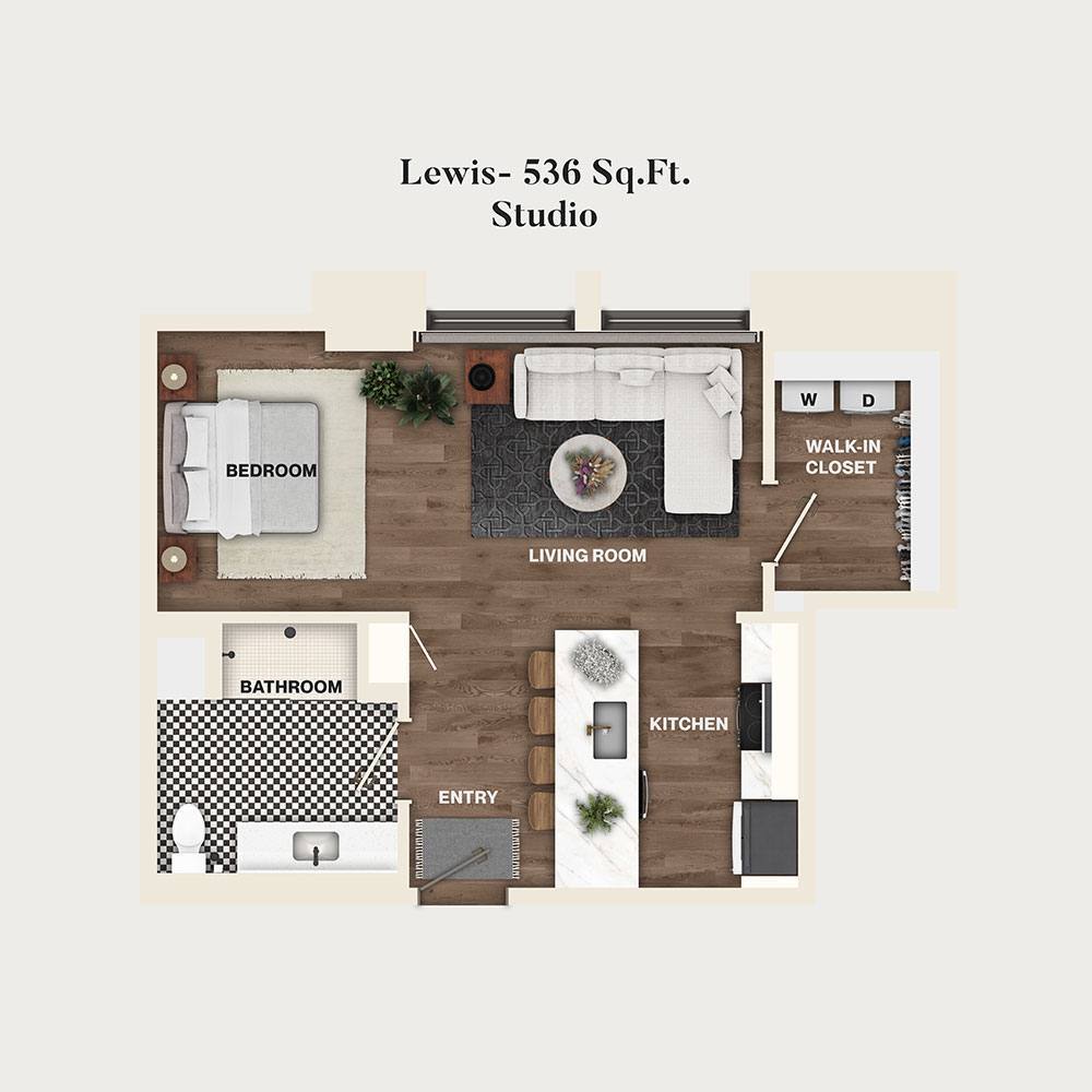 Studio, 1 Bath, 534 sq ftAvailable NowModel Gallery