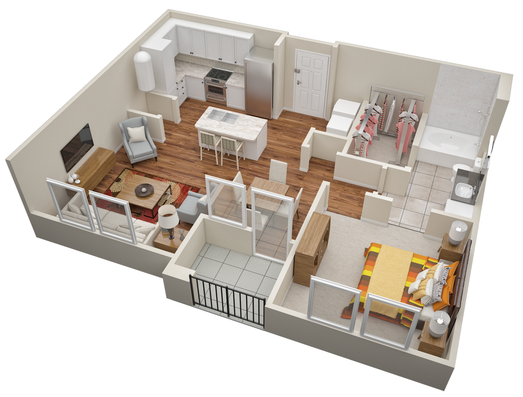 1 Bed, 1 Bath, 576 sq ftModel Gallery