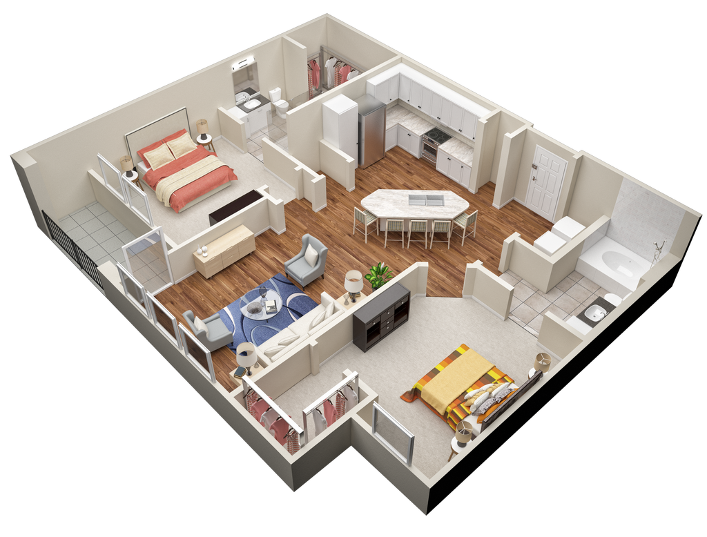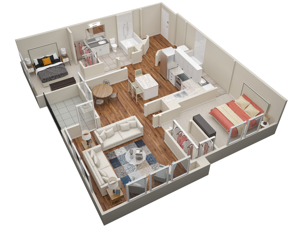2 Beds, 2 Baths, 1201 sq ftAvailable NowModel Gallery