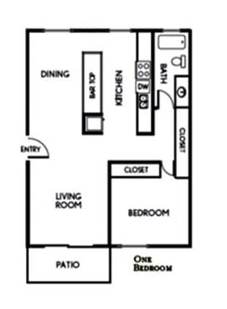 One Bedroom - Floorplan 1 Apartment Unit: 14Apartment Model: One Bedroom$2,2351 Bedroom, 1 Bath, 725 sq ftAvailable Now2 Bedrooms